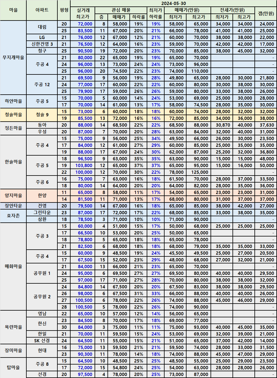 매매 흔적이야 이제는 언급할 필요조차 없고, 일부 단지의 경우 15% 이상 하락한 매물이 상당히 많았는데, 이번 달 정리에서는 최저가가 7%였습니다.