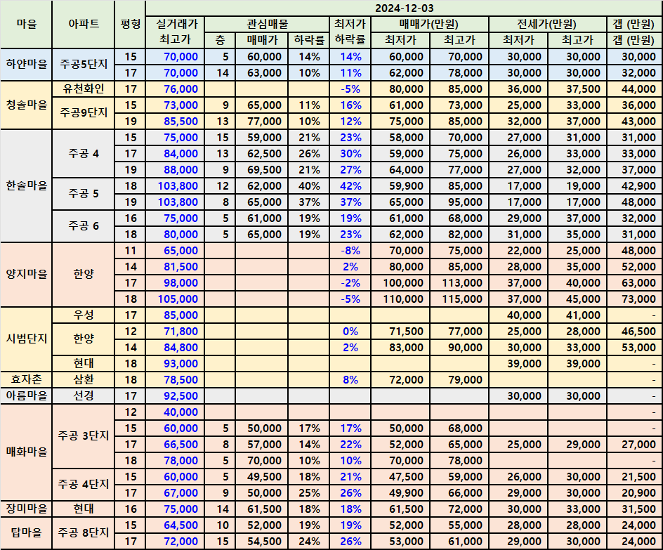 | 구미동 까치마을과 하얀마을아파트 급매물 시세 2412 (0) | 2024.12.05 |