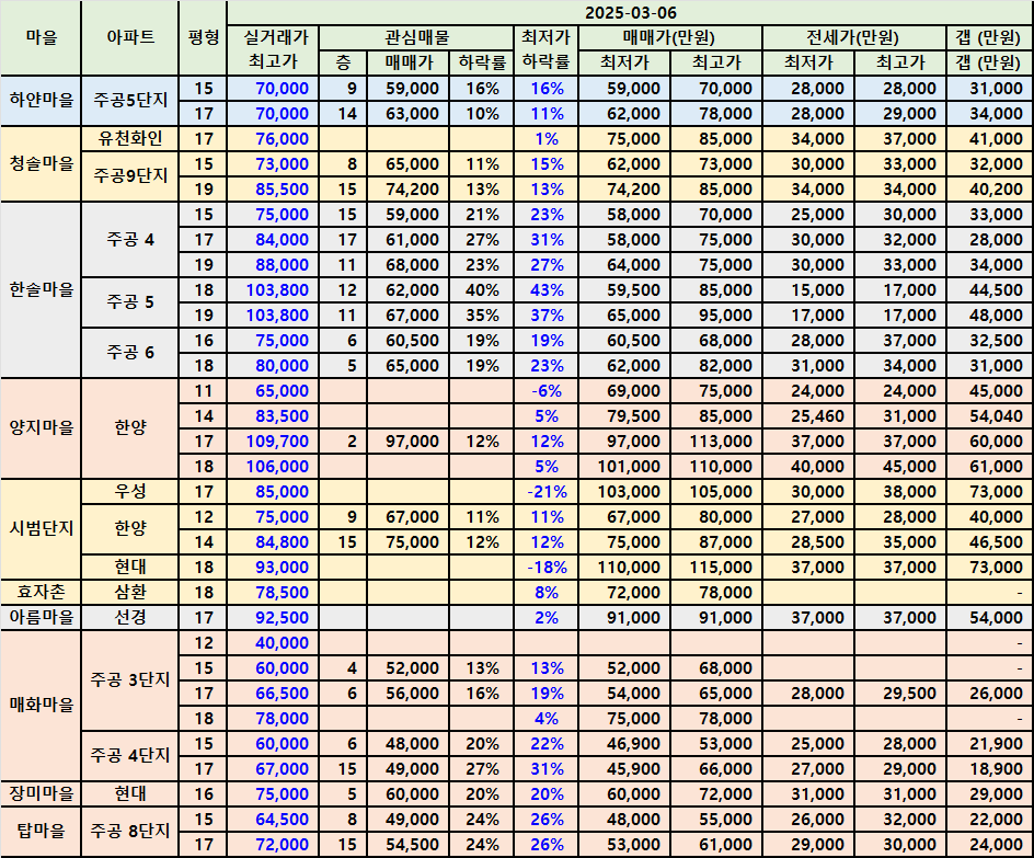 | 구미동 까치마을 & 하얀마을아파트 급매물 시세 2503 (4) | 2025.03.05 |