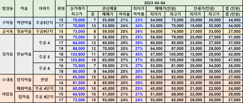 | 정자동 정든마을아파트 급매 202304 (0) | 2023.04.05 |