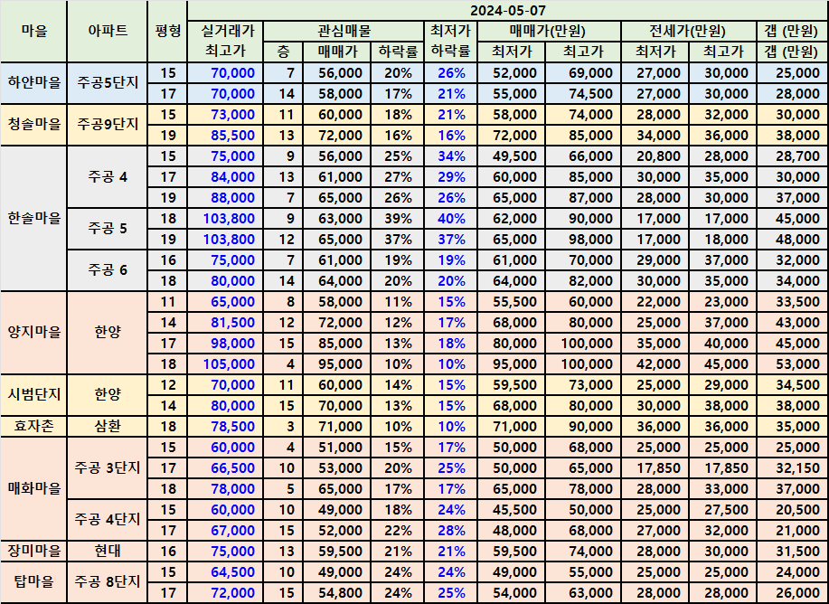| 정자동 느티마을 & 상록마을아파트 급매 202405 (0) | 2024.05.09 |