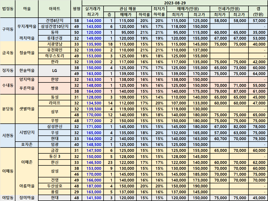 | 분당 아파트 3억대 갭 매물 정리 202308 (0) | 2023.08.31 |