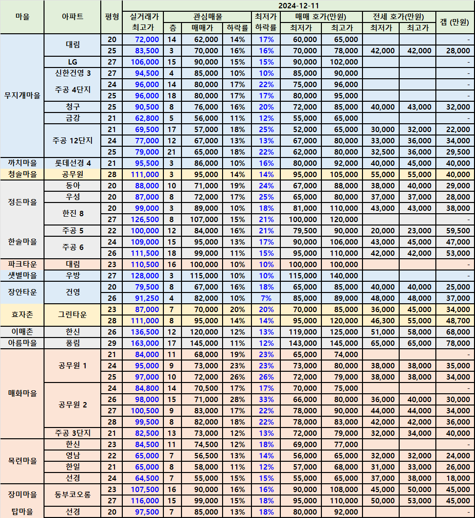 | 정자동 정든마을아파트 급매물 시세 2412 (4) | 2024.12.09 |
