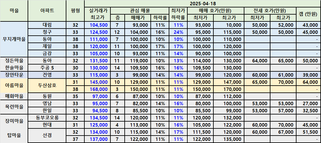 | 수내동 푸른마을아파트 급매물 시세 2504 (0) | 2025.04.10 |