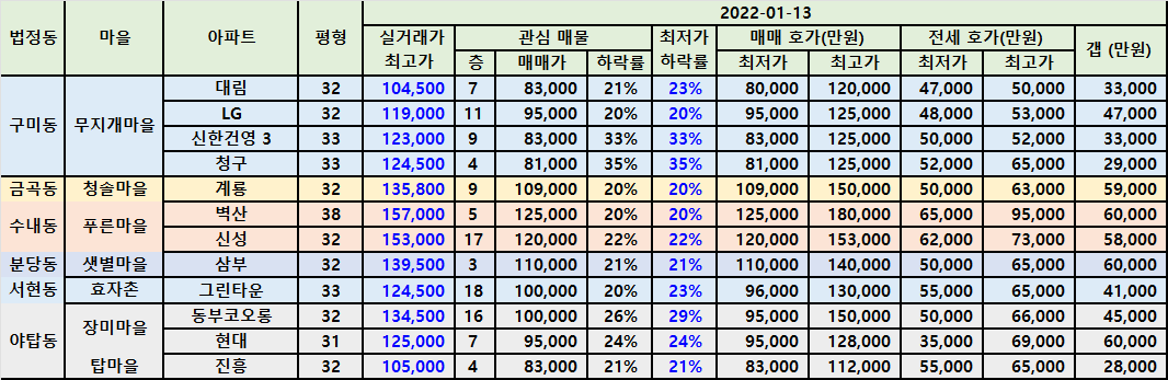 | 분당 40평대 이상 급매물 정리 202301 (0) | 2023.01.18 |