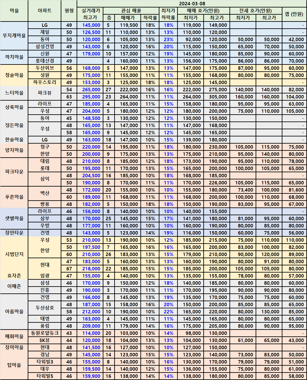 | 정자동 느티마을 & 상록마을 아파트 급매 202403 (0) | 2024.03.08 |