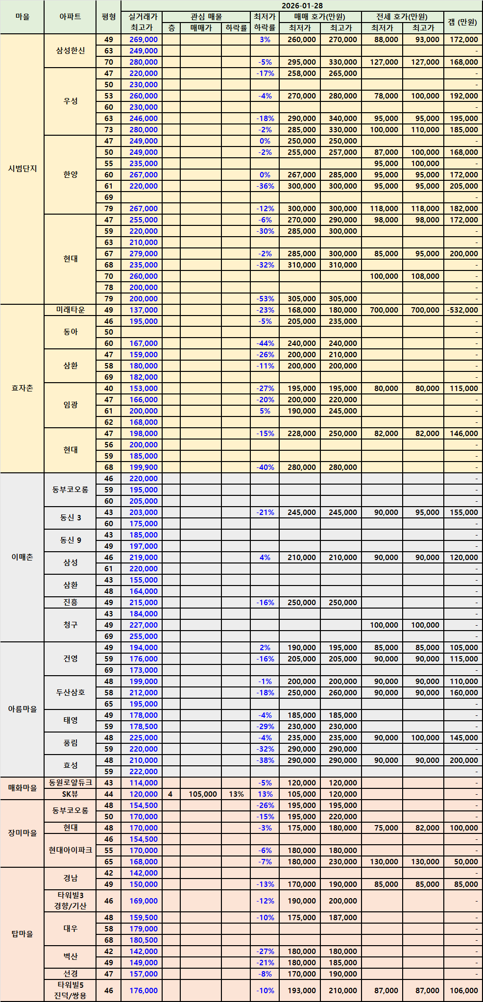 | 분당10평형대아파트 시세 정리 2602 (0) | 2026.02.04 |