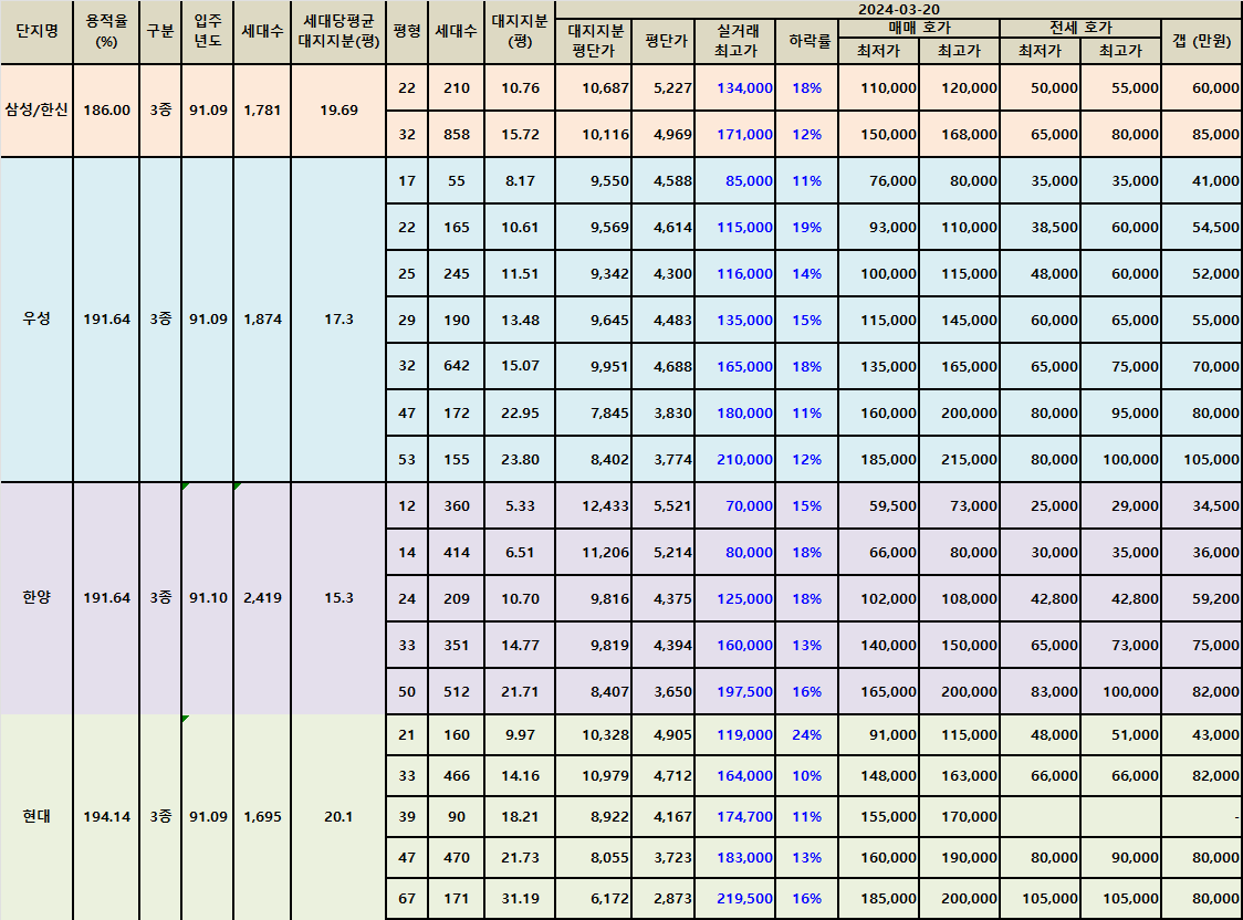 | 분당동 샛별마을과 장안타운 아파트 급매 202403 (2) | 2024.03.18 |