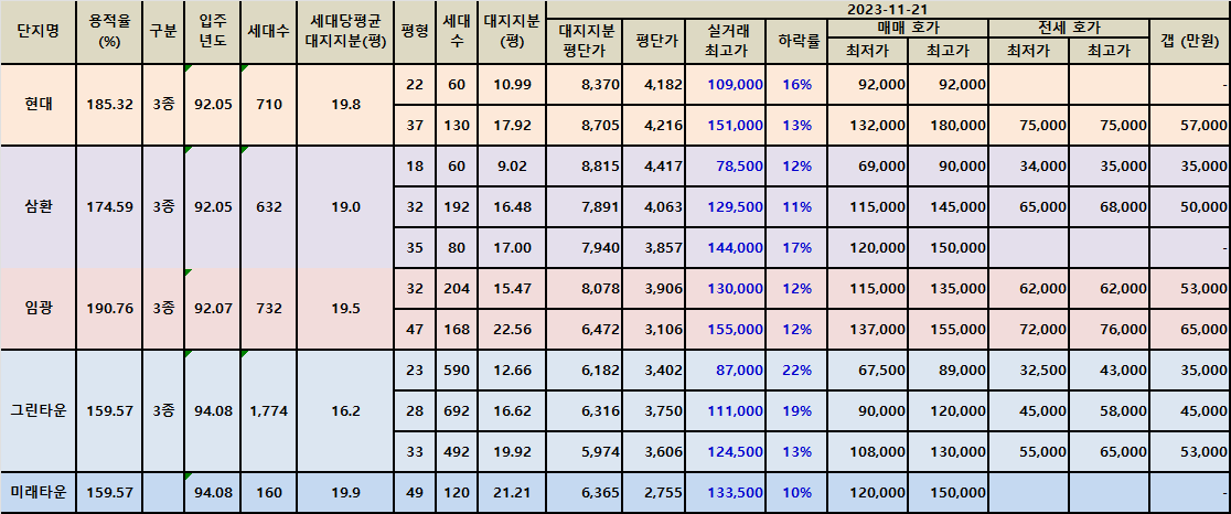 | 분당동 샛별마을과 장안타운 아파트 급매 202311 (0) | 2023.11.18 |