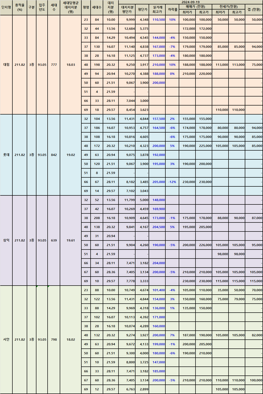 | 분당동 샛별마을과 장안타운아파트 급매물 시세 2409 (2) | 2024.09.21 |