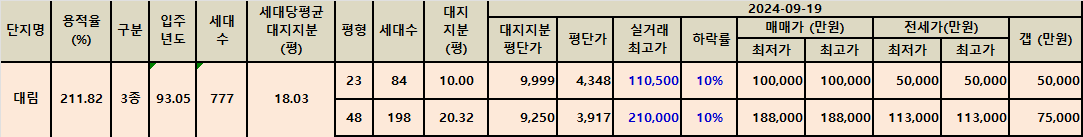 대림아파트 48평 매물 또한 이 매물 한건만 있습니다.