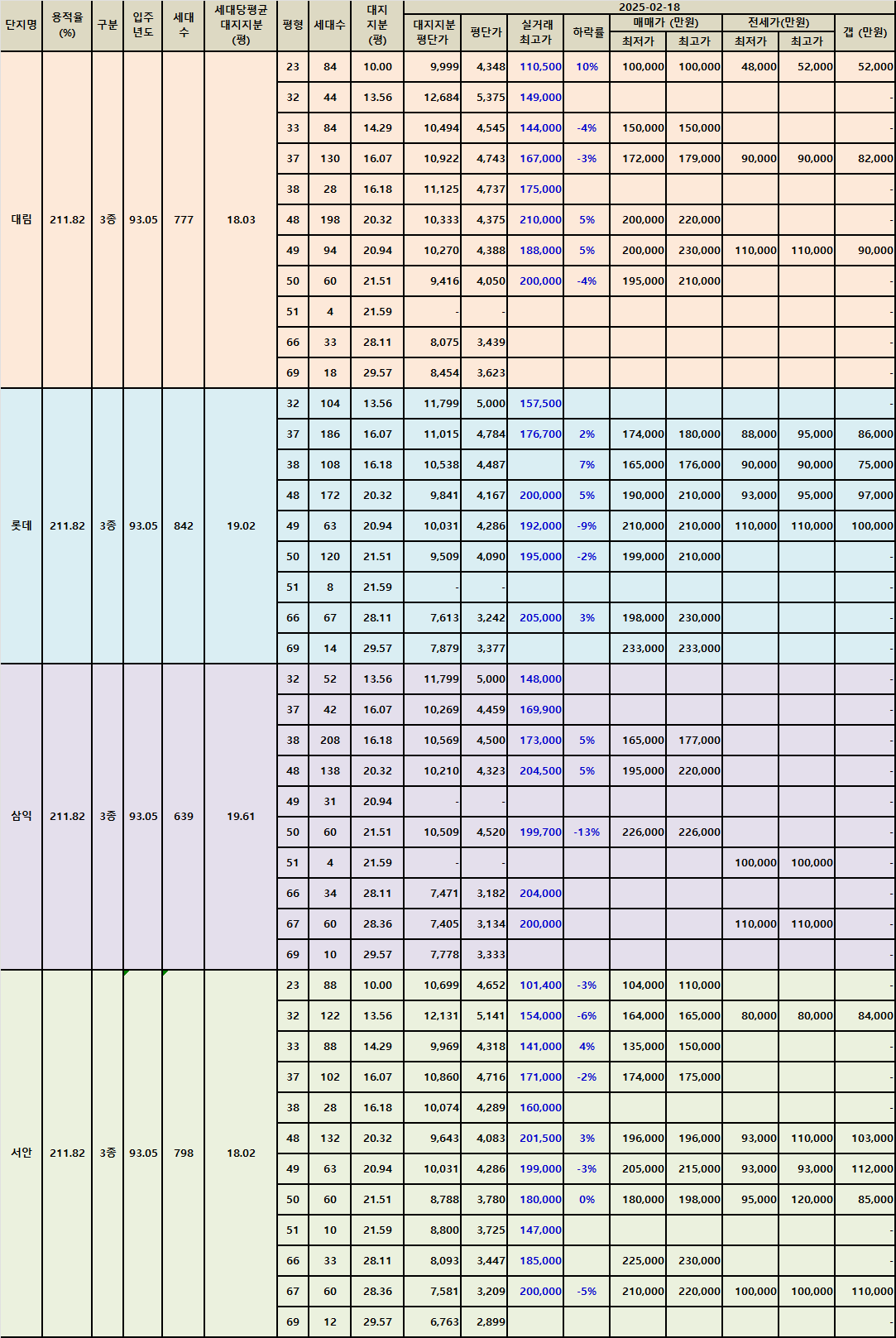 분당동 샛별마을아파트와 장안타운아파트 급매물 시세 2502 (0) | 2025.02.21 |