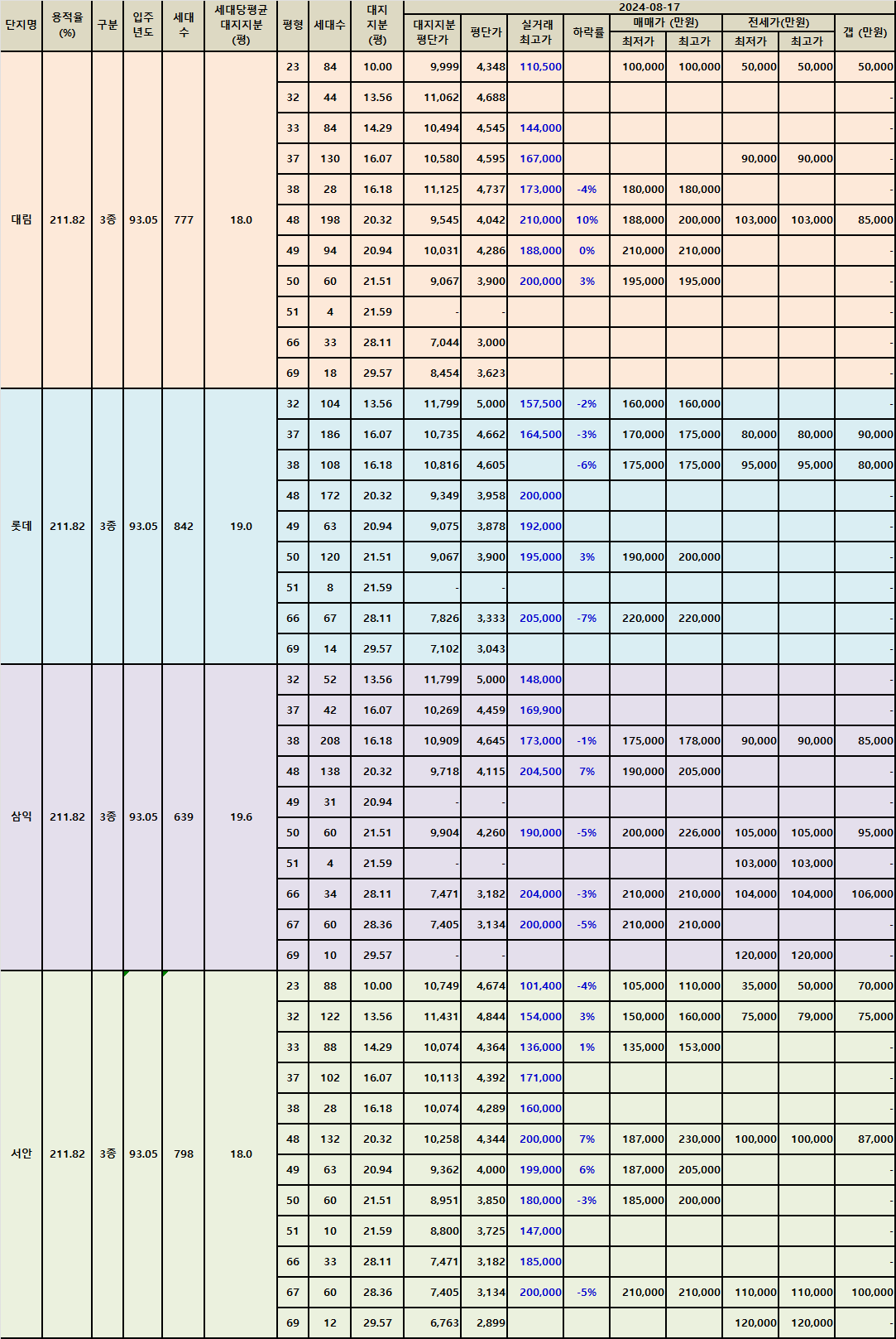수내동 파크타운아파트 급매 시세정리 202408