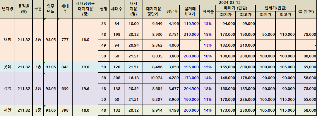 | 분당동 샛별마을과 장안타운 아파트 급매 202403 (2) | 2024.03.18 |