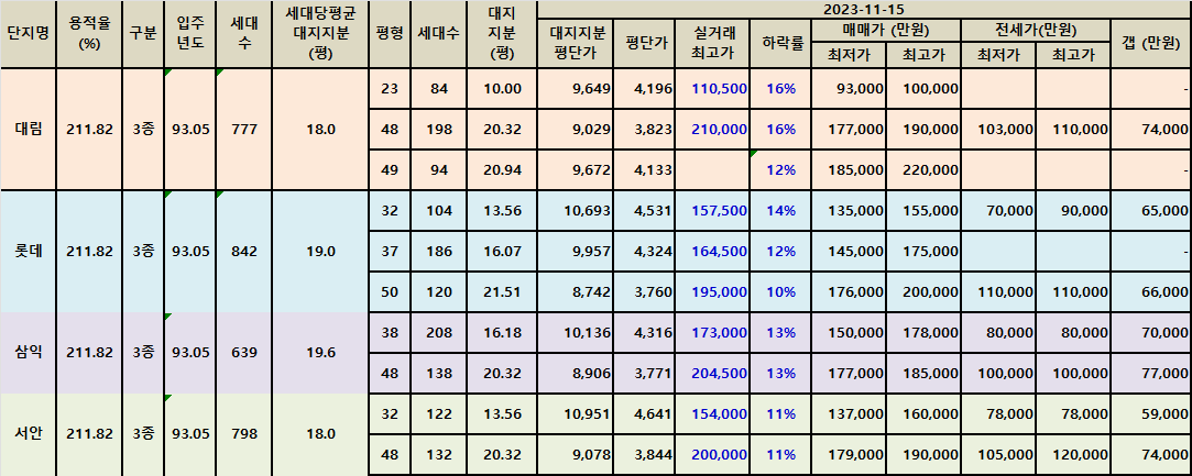 | 분당동 샛별마을과 장안타운 아파트 급매 202311 (0) | 2023.11.18 |