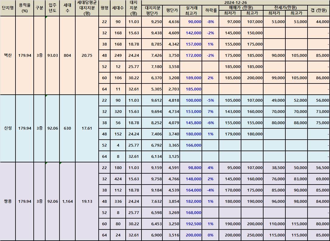 | 분당동 샛별마을과 장안타운아파트 급매물 시세 2412 (0) | 2024.12.26 |