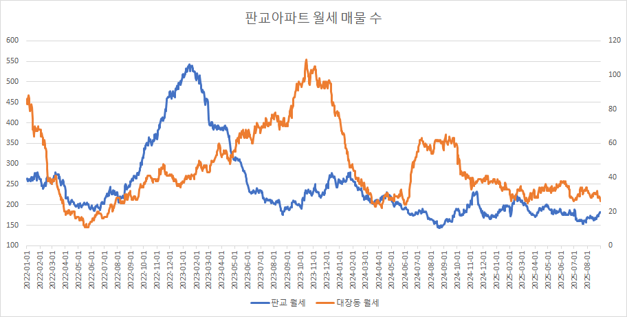 대장동아파트 월세 매물 수는 2주 연속 감소했습니다.