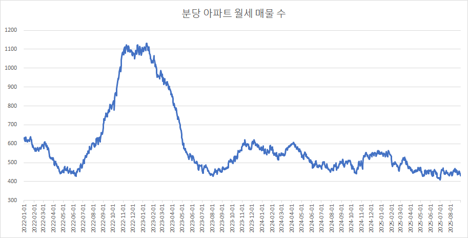 마지막으로, 분당구아파트 월세 매물 수 변화를 확인하겠습니다.