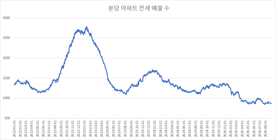 이제 분당구아파트 매물 수 변화를 확인하겠습니다.