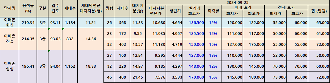 | 이매동 아름마을아파트 급매물 시세 2409 (2) | 2024.09.26 |