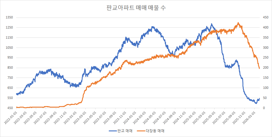 대장동아파트 매매 매물 수는 4주 연속 감소했습니다.