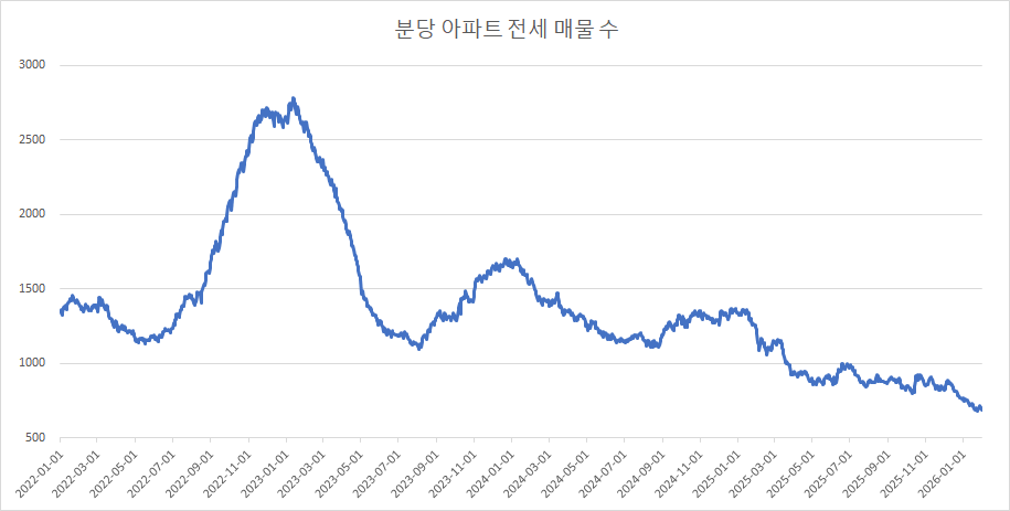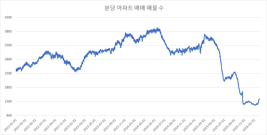 이제 분당구아파트 매물 수 변화를 확인하겠습니다.