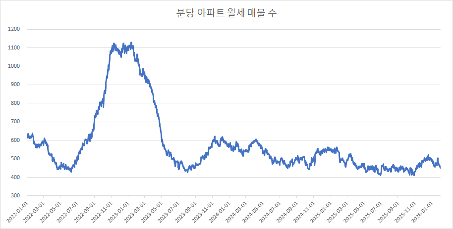 마지막으로, 분당구아파트 월세 매물 수 변화를 확인하겠습니다.