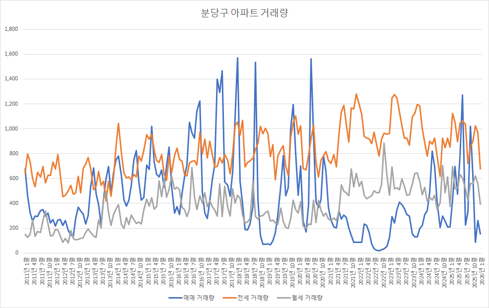 매매 매물이 너무 없어서 고민인 상황에서 이 정도 거래량도 많아 보이기는 하는데, 200 건대의 분당구아파트 월간 매매 거래량이라면 침체를 살짝 벗어난 정도 수준입니다.