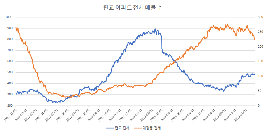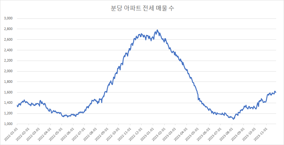 다음은 분당 아파트 전세 매물 수 변화입니다.