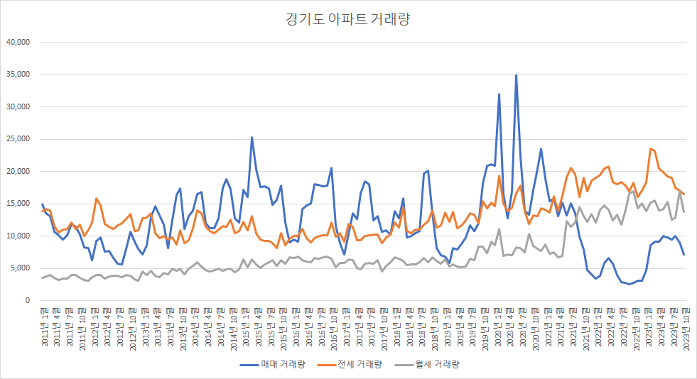 결국 10월 경기도 아파트 매매 거래량은 다시 한번 감소하는 모습을 보이고 말았습니다.