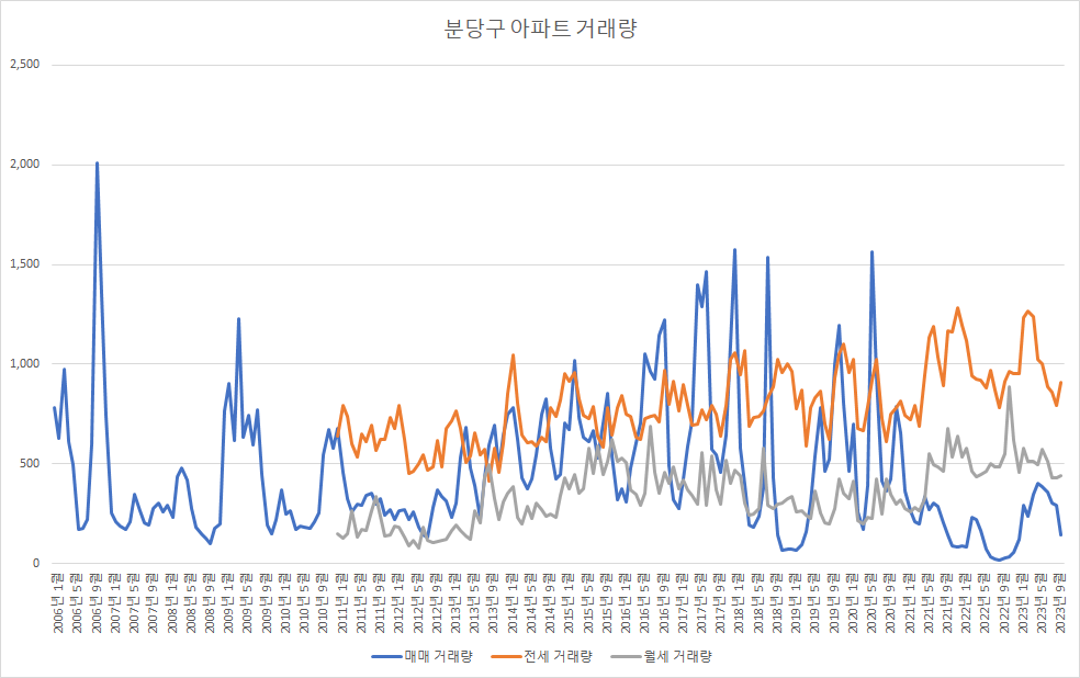 중요한 분당구 아파트 거래량을 보겠습니다.