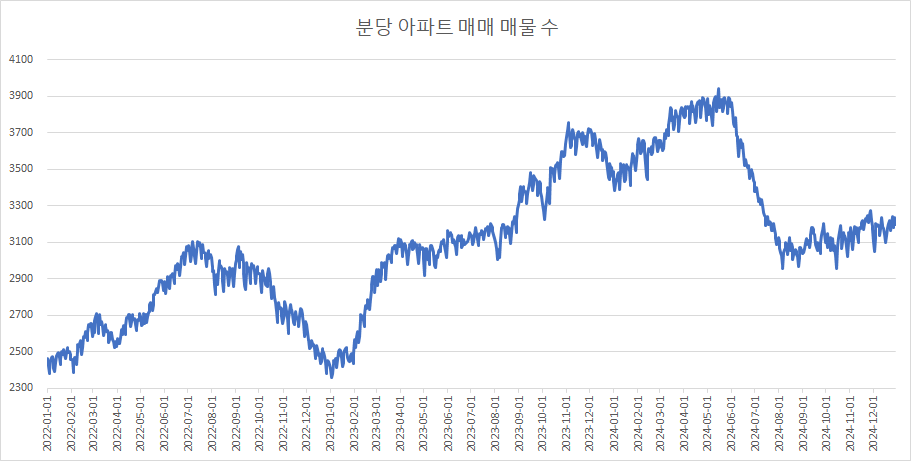 이제 분당구아파트 매물 수 변화를 확인하겠습니다.