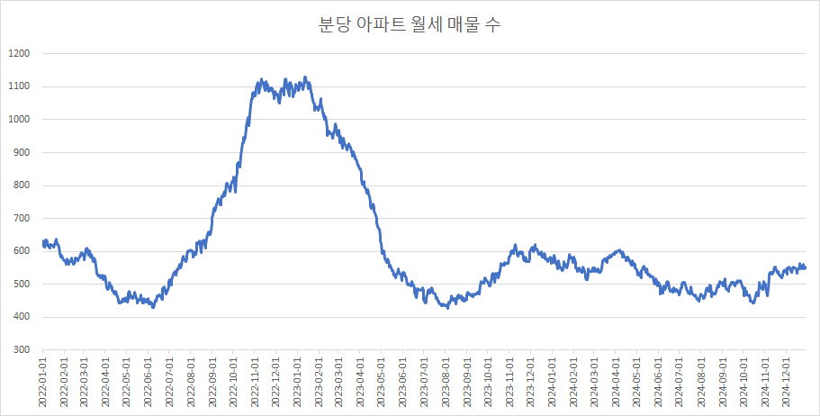마지막으로, 분당구아파트 월세 매물 수 변화를 확인하겠습니다.