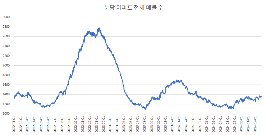 다음은 분당구아파트 전세 매물 수 변화를 확인하겠습니다.