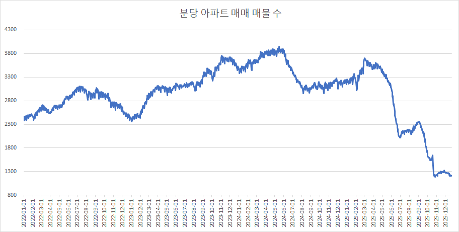 이제 분당구아파트 매물 수 변화를 확인하겠습니다.