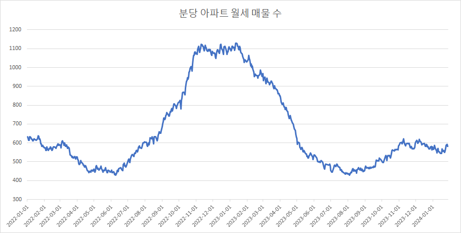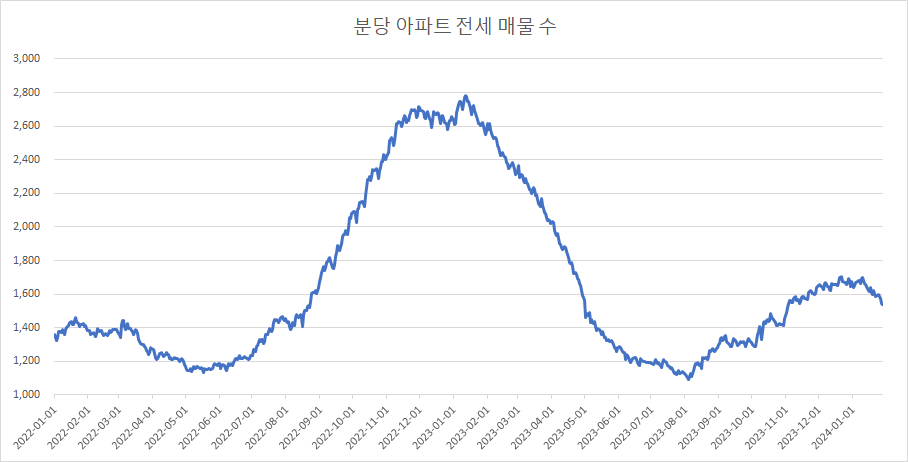 다음은 분당구 아파트 전세 매물 수 변화를 확인하겠습니다.
