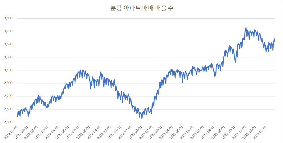 분당 아파트 매매 매물 수는 2주 연속 증가했습니다.