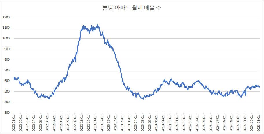 마지막으로, 분당구아파트 월세 매물 수 변화를 확인하겠습니다.