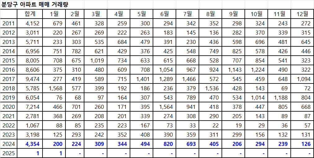 1월 분당구아파트 매매 거래량은 현재 1건입니다.