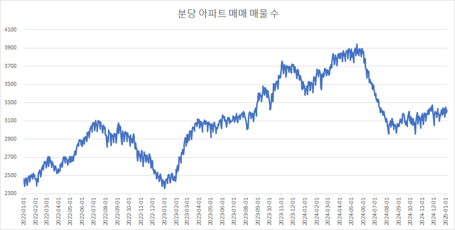 이제 분당구아파트 매물 수 변화를 확인하겠습니다.