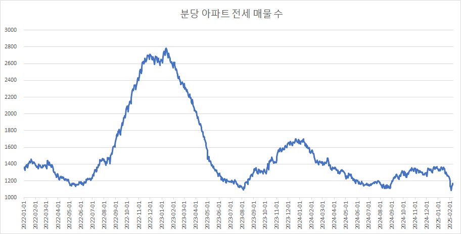 다음은 분당구아파트 전세 매물 수 변화를 확인하겠습니다.