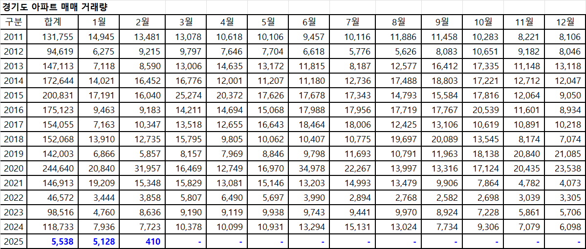 2월 경기도아파트 매매 거래량은 현재 410건입니다.