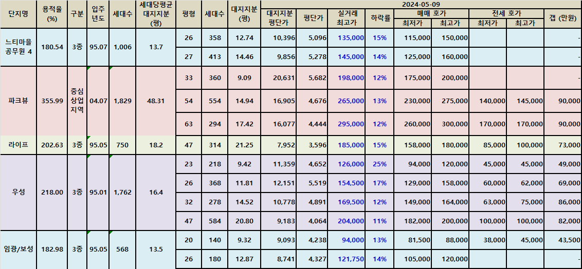 정자동 느티마을 & 상록마을아파트 급매 202405