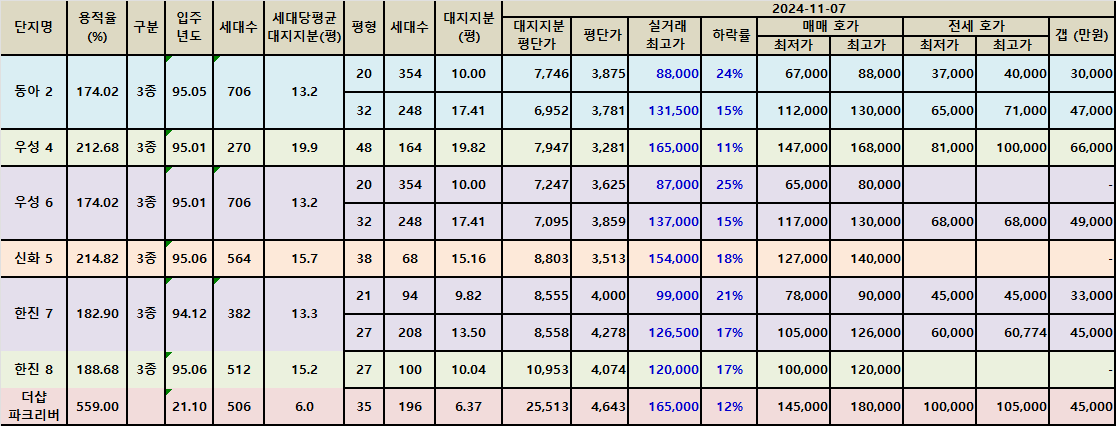| 정자동 느티마을 & 상록마을아파트 급매물 시세 2411 (0) | 2024.11.09 |