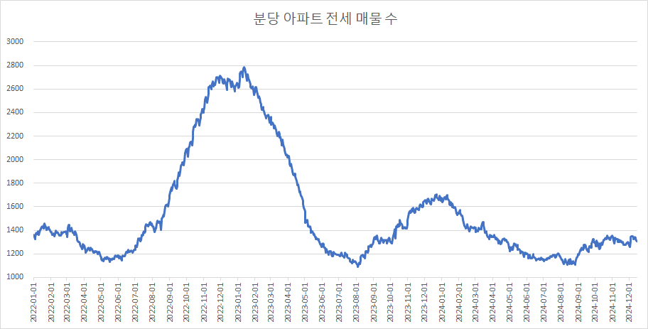 다음은 분당구아파트 전세 매물 수 변화를 확인하겠습니다.