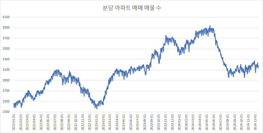 이제 분당구아파트 매물 수 변화를 확인하겠습니다.