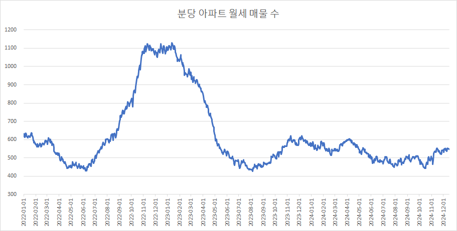 이제 분당구아파트 매물 수 변화를 확인하겠습니다.