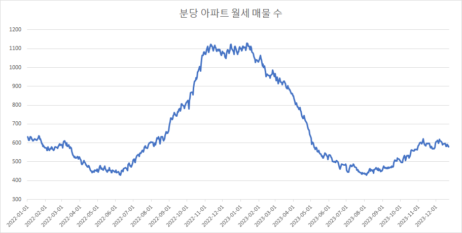 다음은 분당구 아파트 전세 매물 수 변화를 확인하겠습니다.