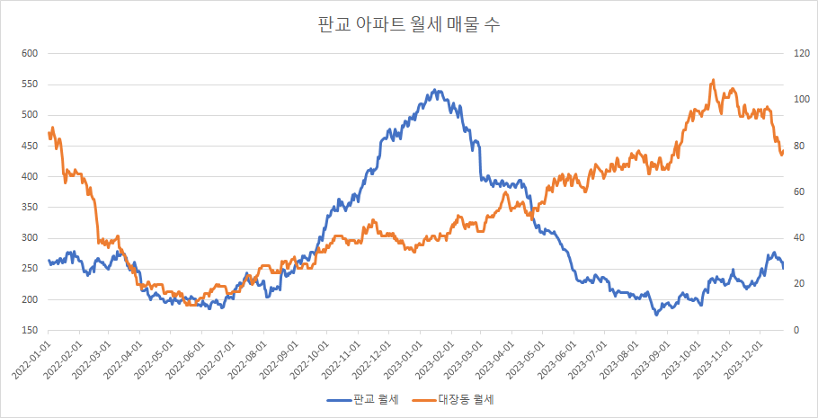 대장동 아파트 월세 매물 수는 2주째 급감을 있어가고 있습니다.