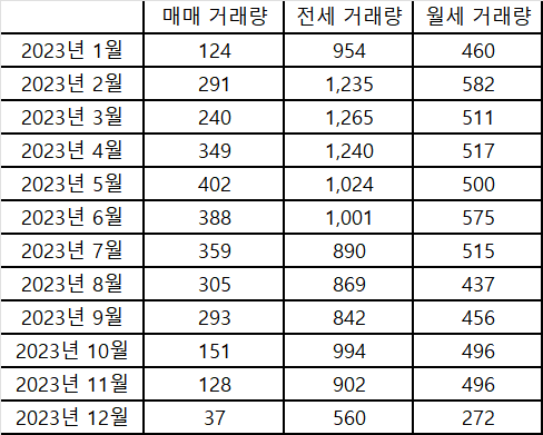 아래 표는 경기도 아파트 거래량입니다.